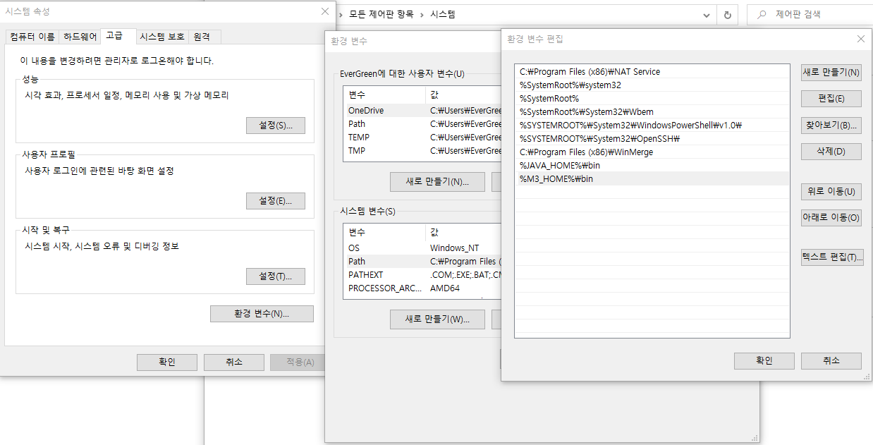 위의 사진처럼 변수이름과 메이븐이 설치된 경로를 지정해주면됩니다.