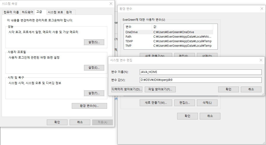 먼저 시스템변수 JAVA_HOME을 등록합니다. 설치된 JDK 경로를 등록하면 됩니다.