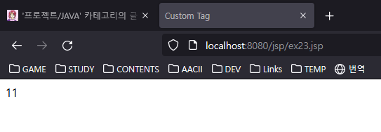 ex23.jsp를 다시 실행하면 몸체 실행이 10번 반복되고 종료되는 것을 확인할 수 있습니다.
