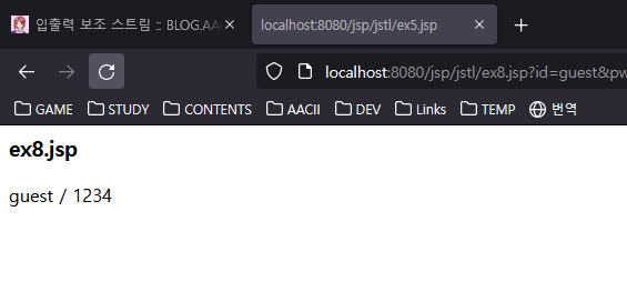 /jstl 폴더에 ex8.jsp를 작성합니다.