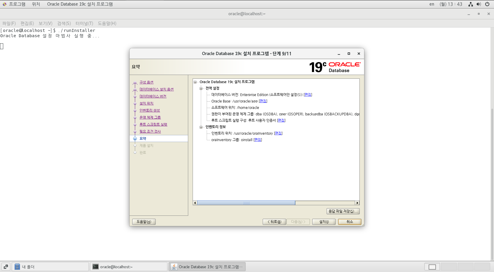 위의 환경 설정을 자동으로 하면 oracle 그룹과 oracle 계정이 생성되었을 것입니다.