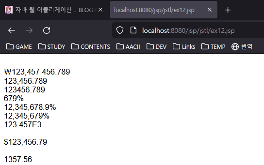 <fmt:formatNumber> : 숫자, 퍼센트, 통화(돈) 을 표시하기 위해 사용하는 태그입니다.