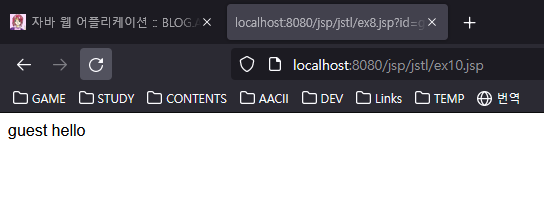 /jstl 폴더에 ex10.jsp 파일을 작성합니다.