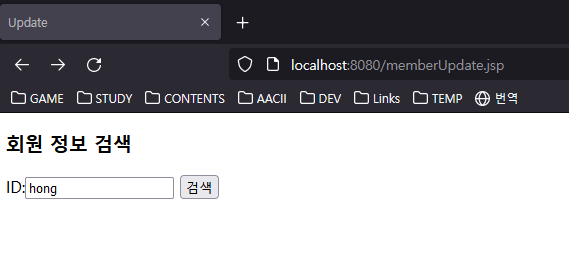 WebContents 폴더에 memberUpdate.jsp를 작성합니다.
