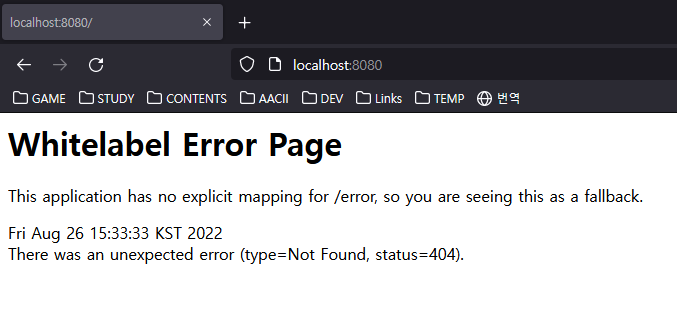 이상태에서 브라우저를 열고 localhost:8080 을 입력해서 아래와 같이 나오면 정상동작하고 있는 것입니다.