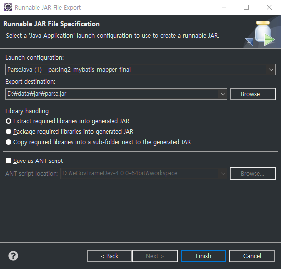 위에서 설치한 JDK의 jar를 이용해 parse.jar의 압축을 풉니다.