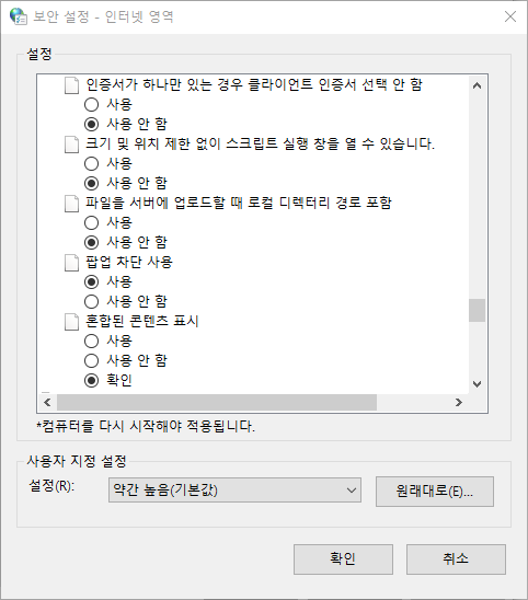 그리고 재부팅해보시고 문제가 된 사이트(혹은 애플리케이션)를 실행시켜 보시기 바랍니다.