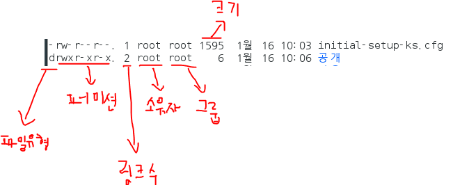 - ls -l 디렉토리 목록을 자세하게 보여줌