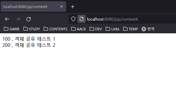 테스트 해볼 때는 먼저 http://localhost:8080/jsp/context3 를 실행한 후에, 서버를 재시작 하지 않은 상태로