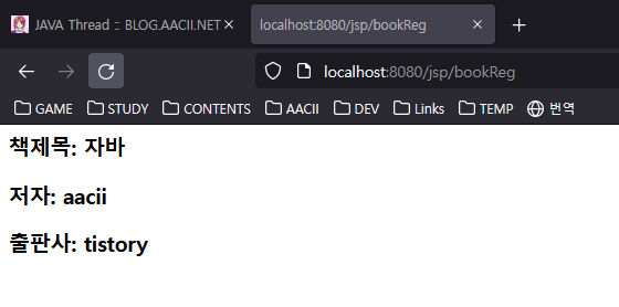 out.print("<h3>책제목: "+book.getTitle() + "</h3>");