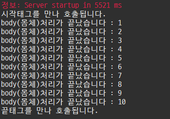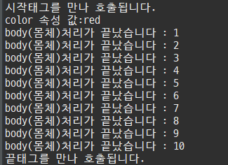 ex23.jsp를 다시 실행하면 몸체 실행이 10번 반복되고 종료되는 것을 확인할 수 있습니다.