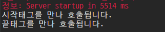 실행해보면 콘솔 창에 java파일에서 작성했던 내용이 출력되는 것을 확인할 수 있습니다.