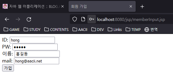 그 다음 View 역할을 하는 memberInput.jsp 을 작성합니다.