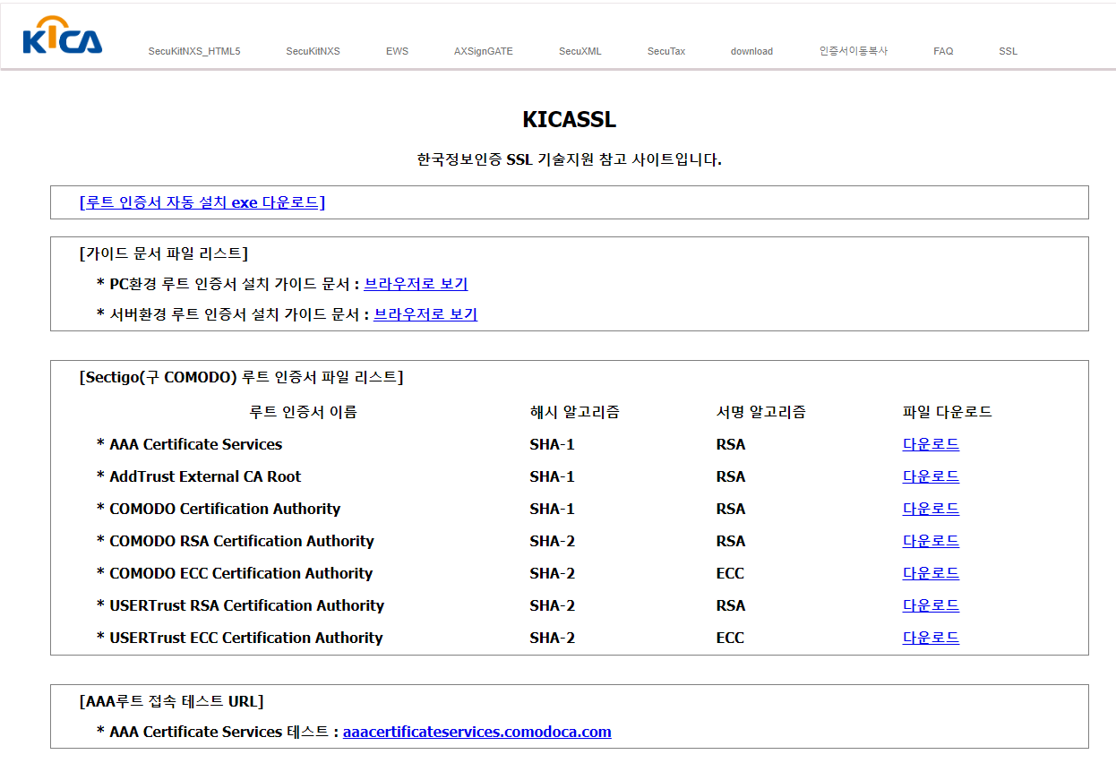 2020년 5월 30일에 만료된 Comodo, Sectigo의 경우 한국정보인증 SSL 기술지원 사이트에서 도움을 받을 수 있습니다.