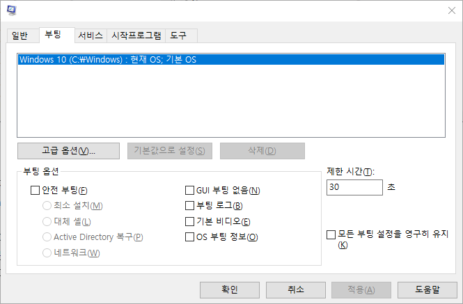 그래도 서비스가 시작이 되지 않는다면 안전모드 부팅을 시도해 보십시오.
